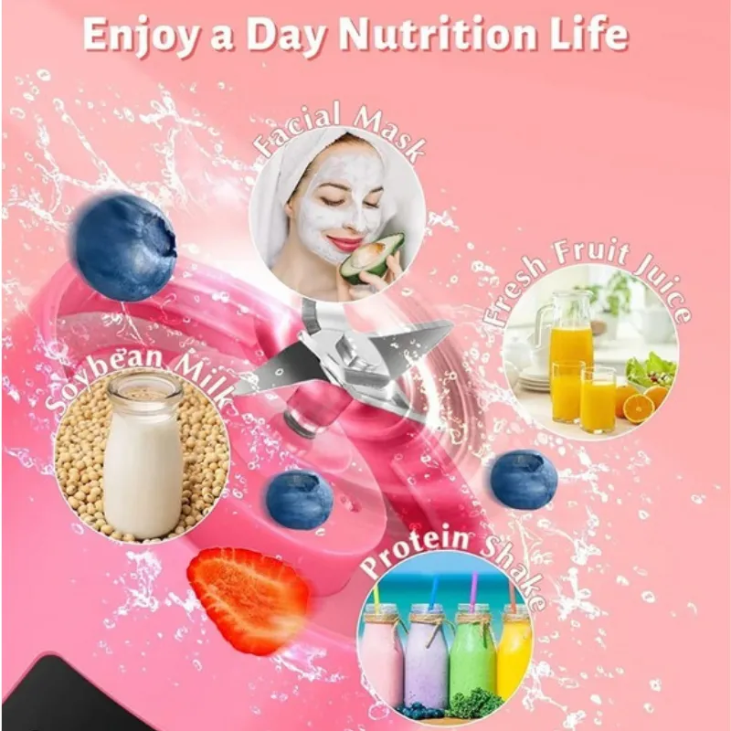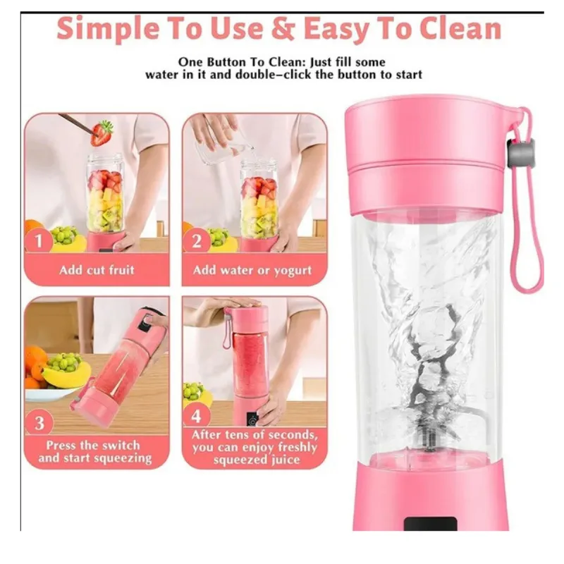 Enjoy fresh juice anytime, anywhere with the USB Rechargeable Portable Juicer Machine—a compact, convenient, and ultra-fast solution for your on-the-go lifestyle. Equipped with 6 powerful stainless steel blades, this mini juicer blender easily blends fruits, vegetables, and even small ice cubes into smooth, nutritious drinks in seconds. Its 400ml capacity makes it perfect for personal use, whether you’re at the gym, office, school, or traveling.
